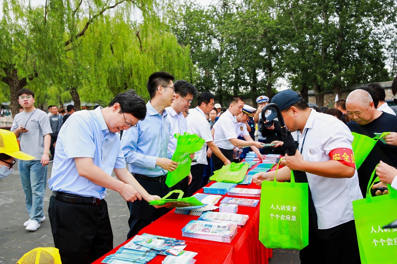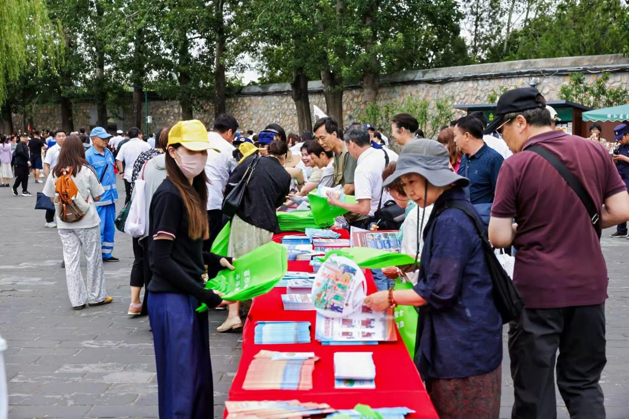 资料发放区,展台上摆满了《旅游安全实务手册》《北京市文化和旅游局防汛宣传手册》《危险化学品安全知识手册》《守护平安、远离邪教》《燃气安全》《电动车充电安全》等十余种安全生产相关宣传资料及行业安全宣传纪念品,现场领取安全资料和咨询的游客络绎不绝。