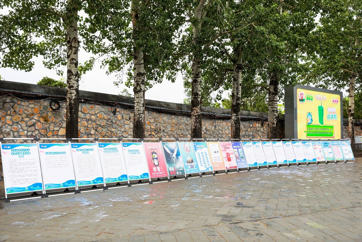 展板展示区,20余块展板集中展示了文旅行业安全生产治本攻坚、文旅行业共性和个性安全隐患排查整治、畅通生命通道、文旅单位主要负责人“八带头”、文旅单位员工“人人讲安全”,以及普法宣传、反邪教警示宣传、消防安全、汛期出行安全、燃气安全、应急自救互救常识、临建设施标准规范等重点领域安全知识内容。