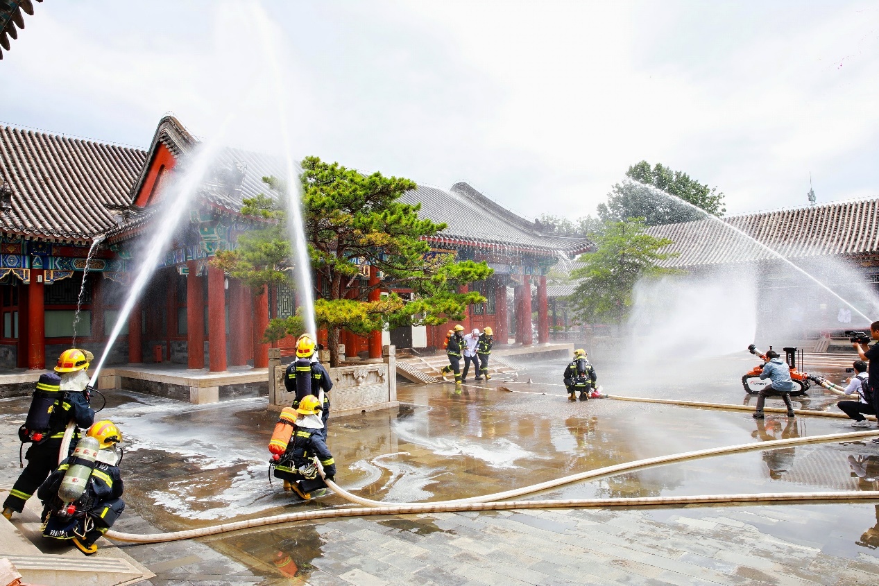 应急演练区,海淀区消防救援局和颐和园管理处共同组织开展了水上救援演练、反恐防暴演练和古建消防演练。演练设计科学、组织指挥顺畅、现场处置高效、现场讲评细致到位,充分彰显了景区应急处置能力和应急管理水平。
