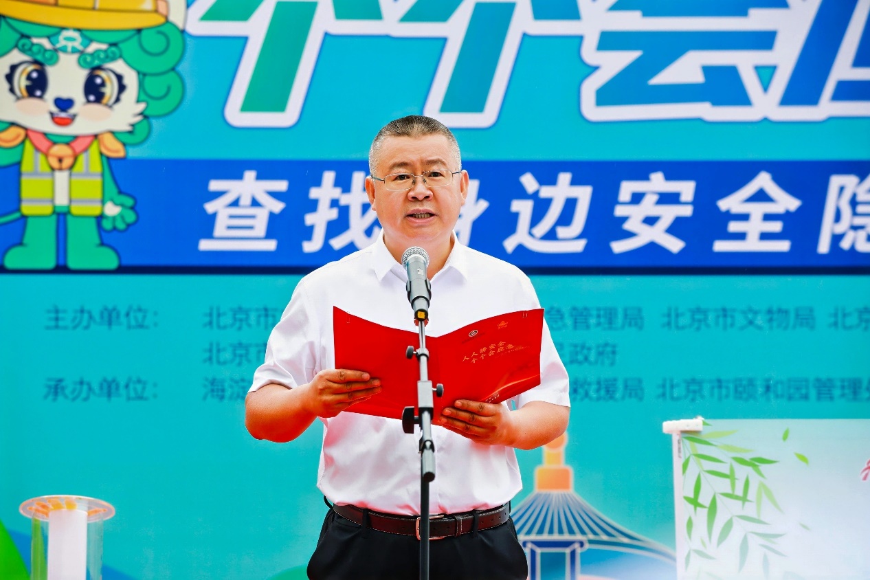 启动仪式上,北京市公园管理中心副主任刘国栋就安全生产月活动做了致辞,提出树牢安全发展理念,扎实推进隐患排查整治,提高安全生产管理能力,积极推进构建多元共治的文旅市场治理体系。颐和园党委书记、园长李晓光代表北京市文化和旅游行业做了安全承诺。